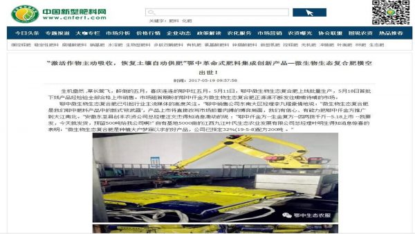 《中国新型肥料网》.《肥料信息网》等新媒体强烈关注鄂中仟金方微生物生态复合肥:鄂中生态革命式肥料集成创新产品—微生物生态复合肥横空出世!