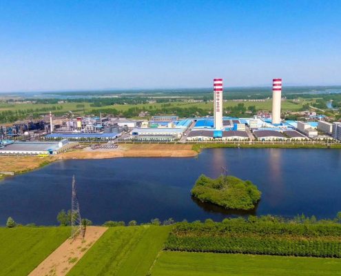 清晨,薄雾如纱轻笼湖面,路灯的微光在水面漾开点点碎金。工人们身着绿色工装,沿湖堤走向厂区,柳枝在晨风中轻摇——这