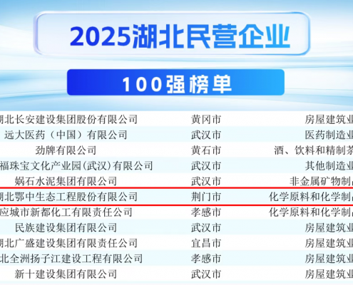 鄂中生态荣膺2025年湖北双百强企业